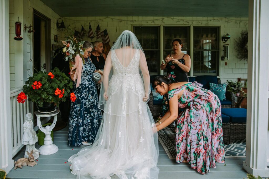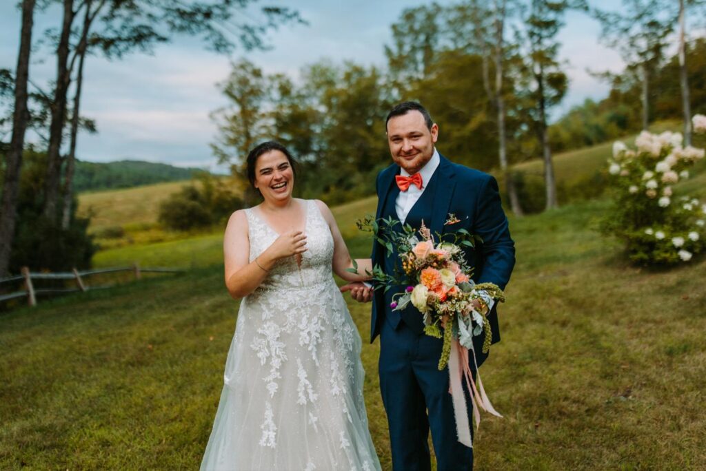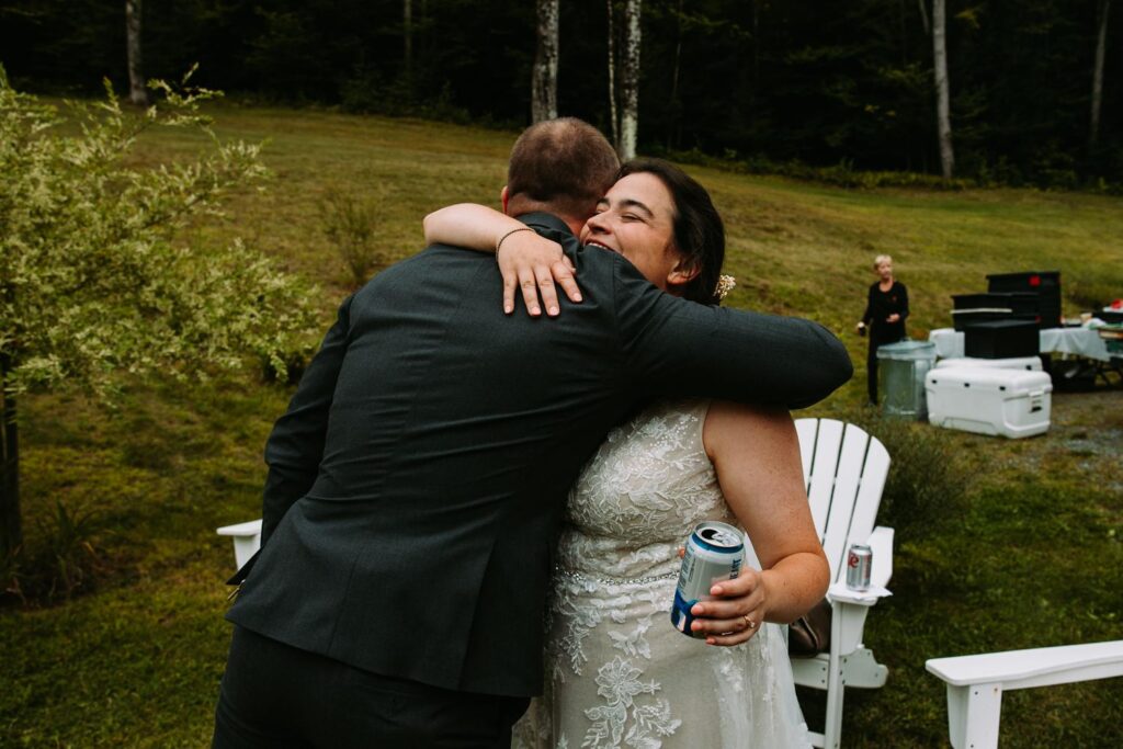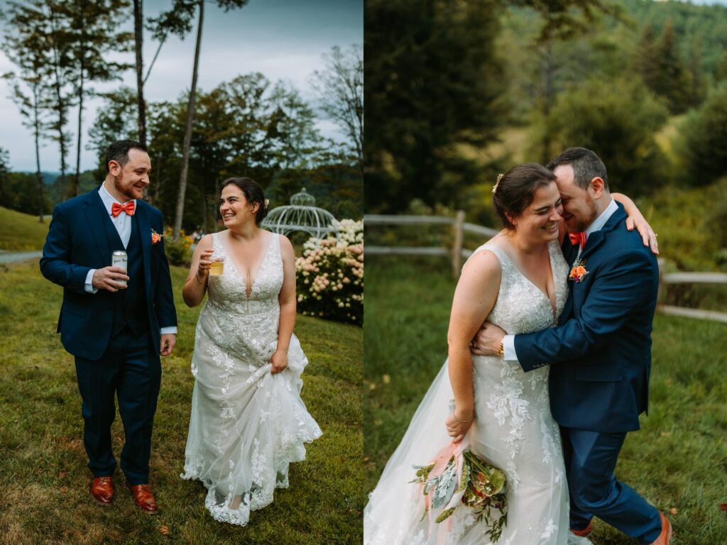 Overcast August light in Vermont with mountain backdrops is basically a photographer’s dream. Every color was saturated and rich, the light was even and flattering, and Laura and AJ made it completely effortless. They wanted to be together, drink a beer, and have fun, and that energy carried through every second.