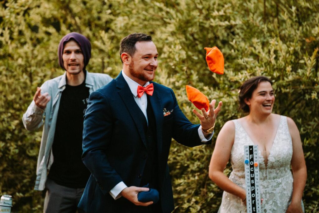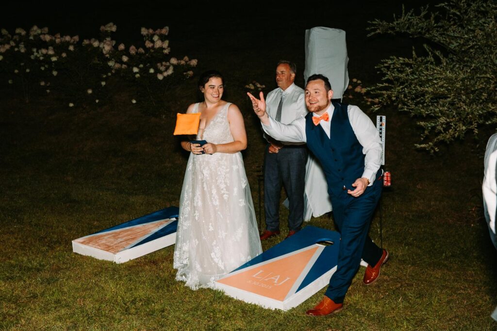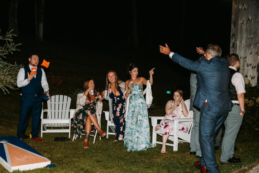 Outside felt like a really great backyard party. Cornhole on the lawn, Adirondack chairs around a firepit, guests wandering the grounds and soaking up those Killington views. Late night snack? Giant pretzels. Just in case you needed a reason to love this wedding even more.