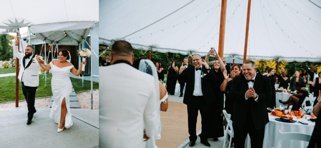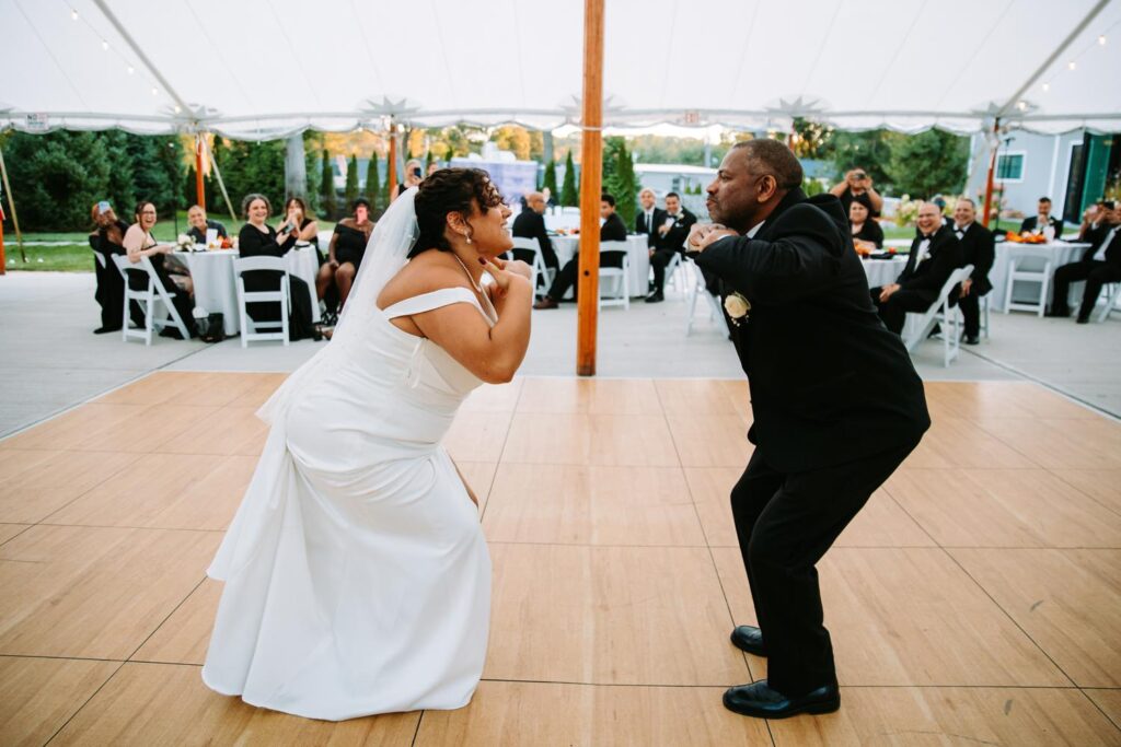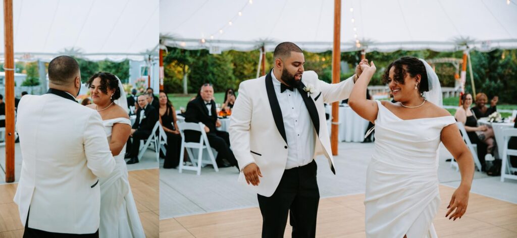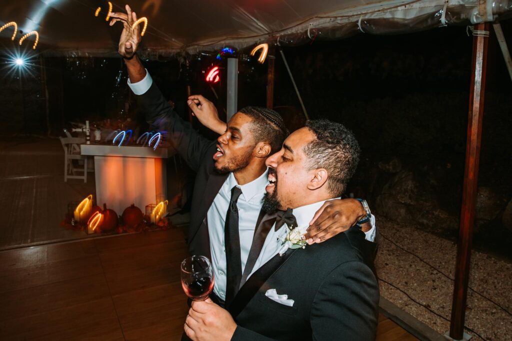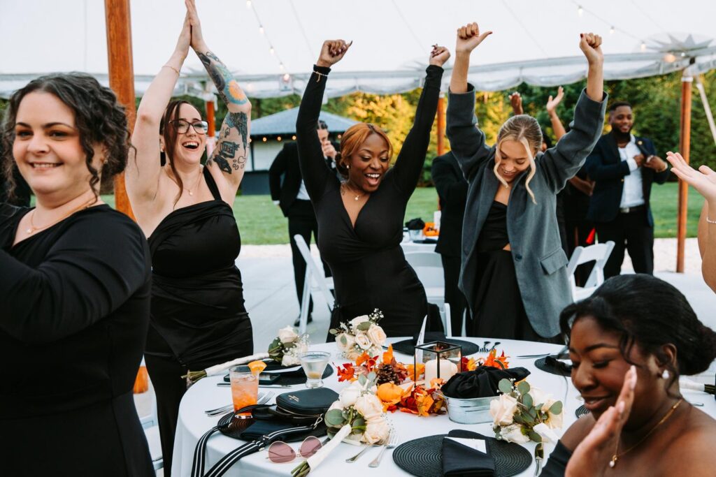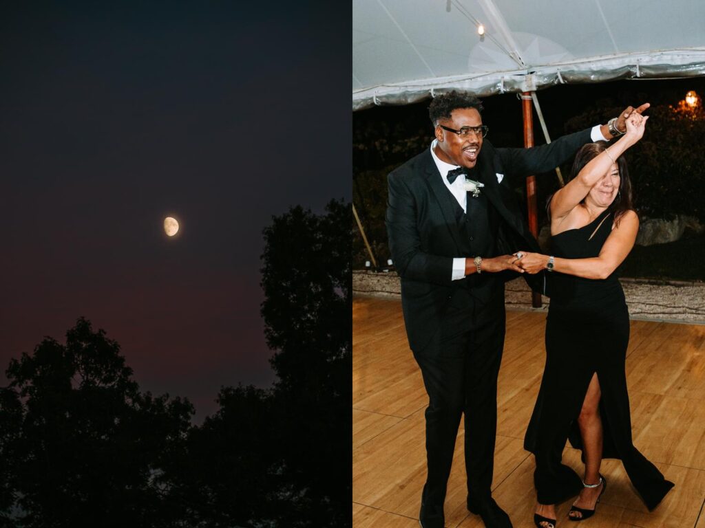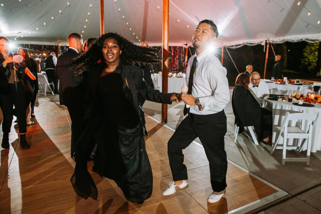 The reception felt relaxed but full of life. The energy moved fast in the best way. Guests danced under the tent, grabbed drinks at the bar, wandered outside to talk, then circled right back to the dance floor.