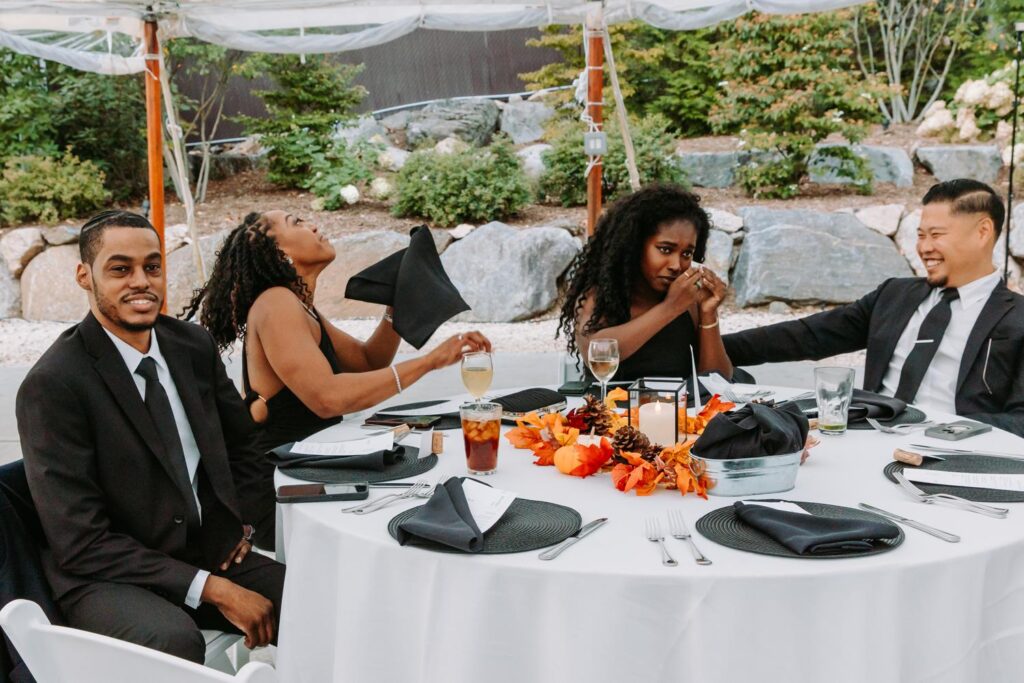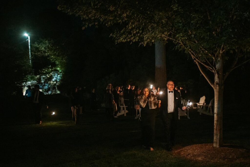 Guests can dance, eat, lounge by the firepit in Adirondack chairs, or hang out at high-top tables scattered across the lawn. There’s space for lawn games, food trucks, and casual moments that feel organic instead of forced.