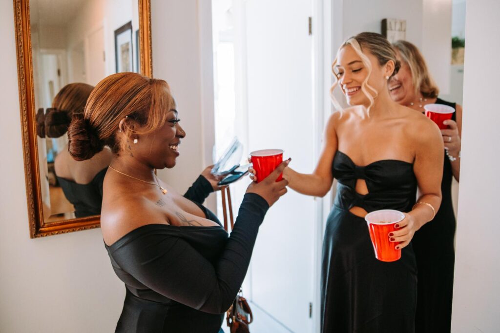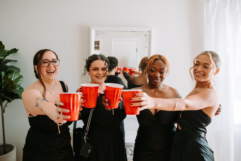 One of the best new additions to The Hops Company is the on-site bridal cottage, and Kaitlyn and her crew made it their own immediately. Old Disney Channel classics were blasting. Think Hilary Duff, Hannah Montana, all the nostalgic hits. Drinks were mixed into red Solo cups. TikToks were filmed. Everyone looked incredible.
