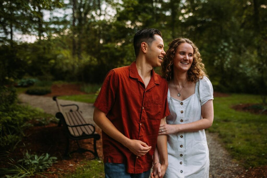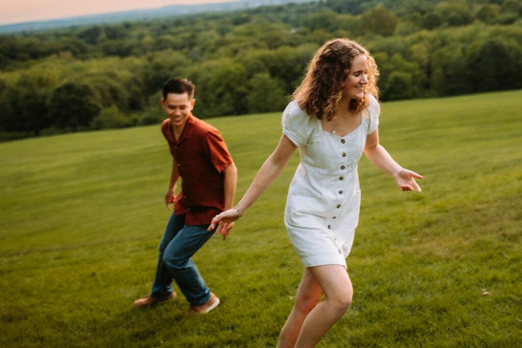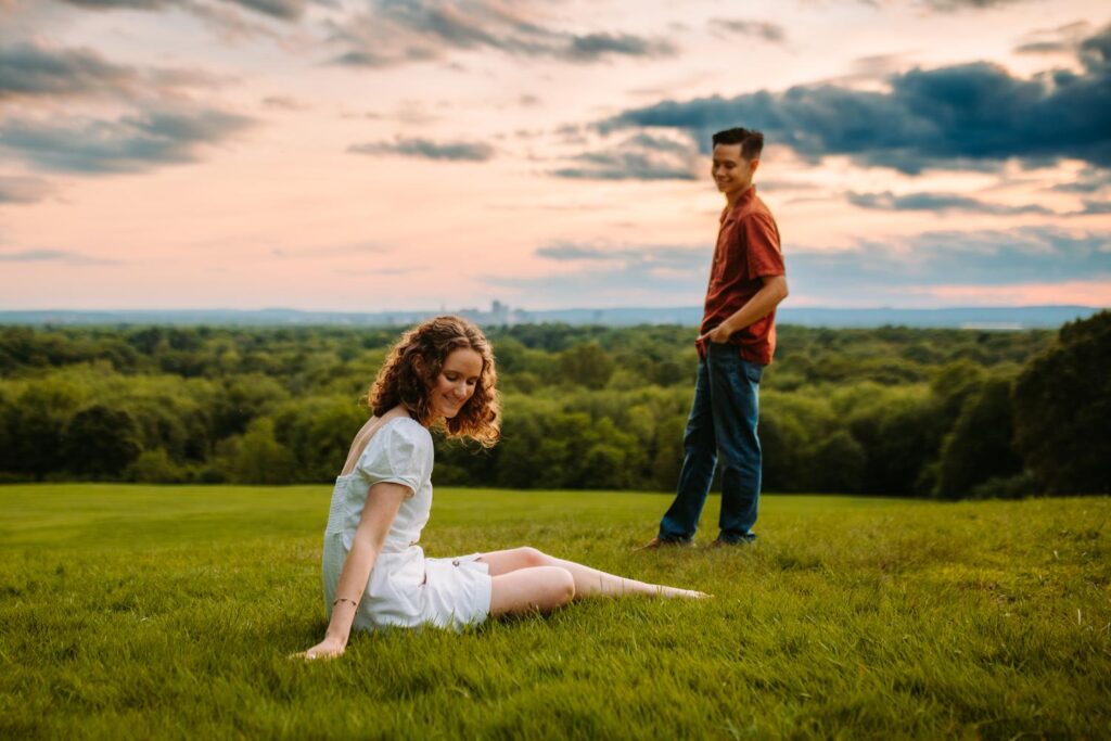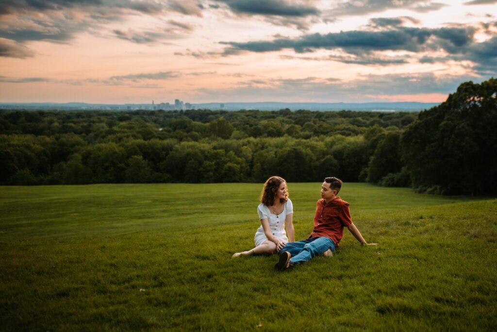 For Madeline and Austin, Wickham Park offered everything in one place. Gardens, rolling fields, woodlands, and that iconic hilltop overlooking the Hartford skyline. We moved through the Japanese and English gardens, wandered open paths, and ended the session up on the hilltop just as the light softened for sunset. Every turn felt like a new backdrop without ever feeling rushed or overwhelming.