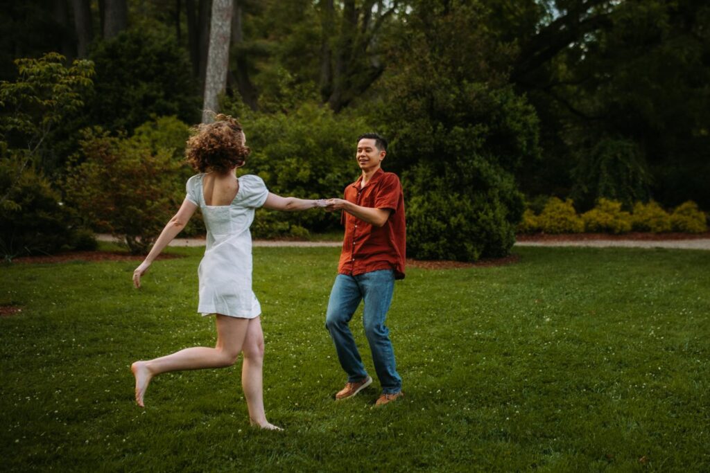 Photographing these two didn’t feel like a job. They move together naturally, melting into each other no matter the prompt or location. We mixed movement with stillness, playful spins with quiet pauses, inside jokes with long meditative moments.